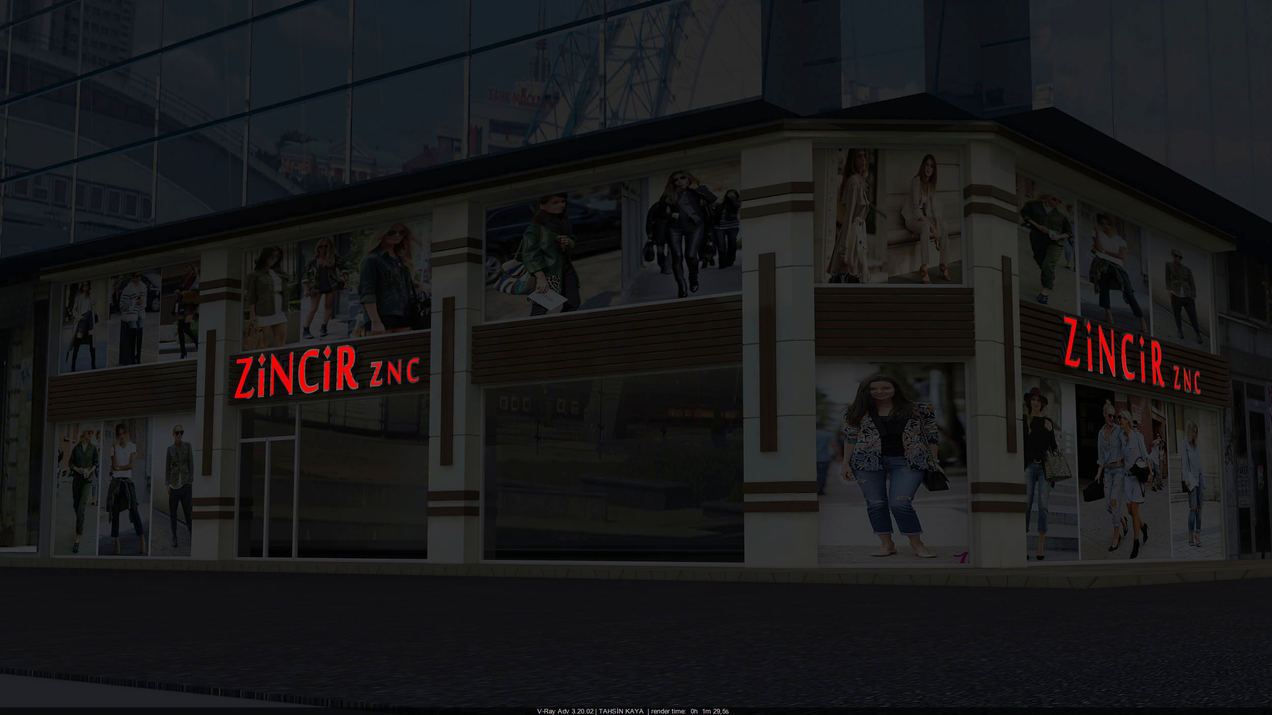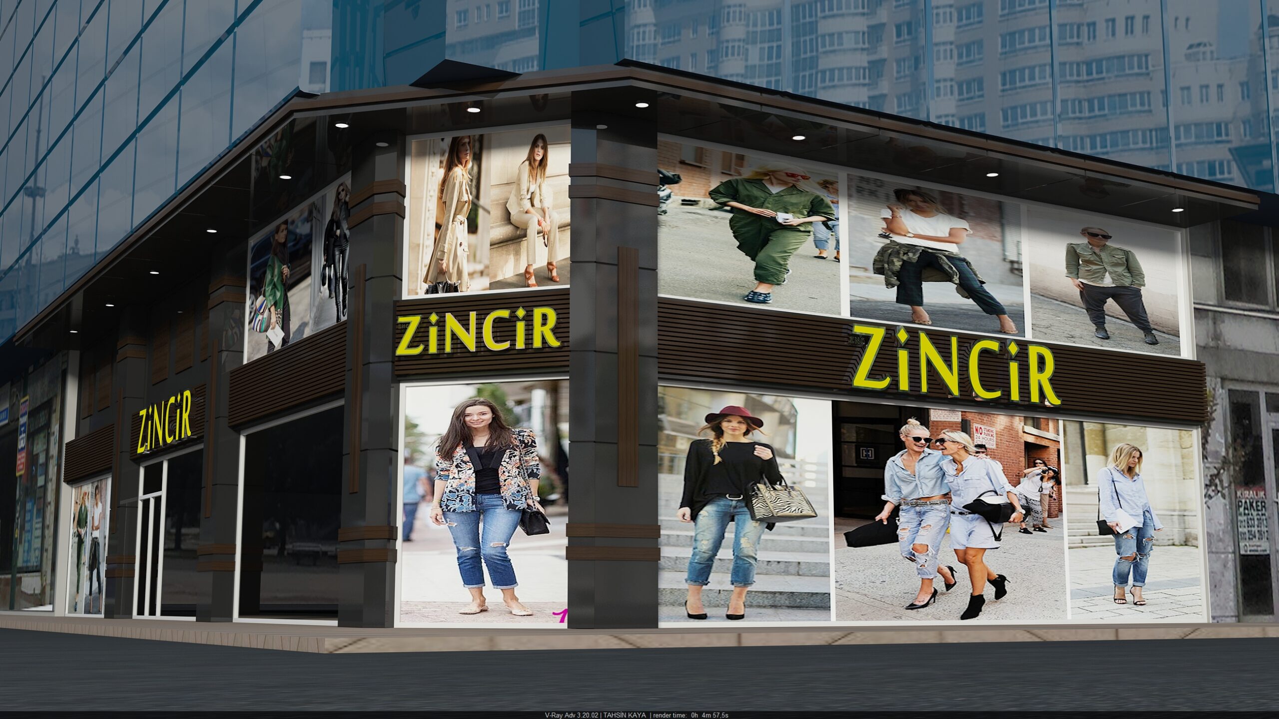 Marka adını öne çıkarmak için Zincir ZNC yazısını kırmızı LED aydınlatmalı kutu harflerle tasarladık. Siyah gövdeli, ön yüzü parlak kırmızı pleksi olan harfler, hem gündüz net bir kontrast oluşturdu hem de gece parlak ışığıyla uzaktan fark edilir hale geldi.